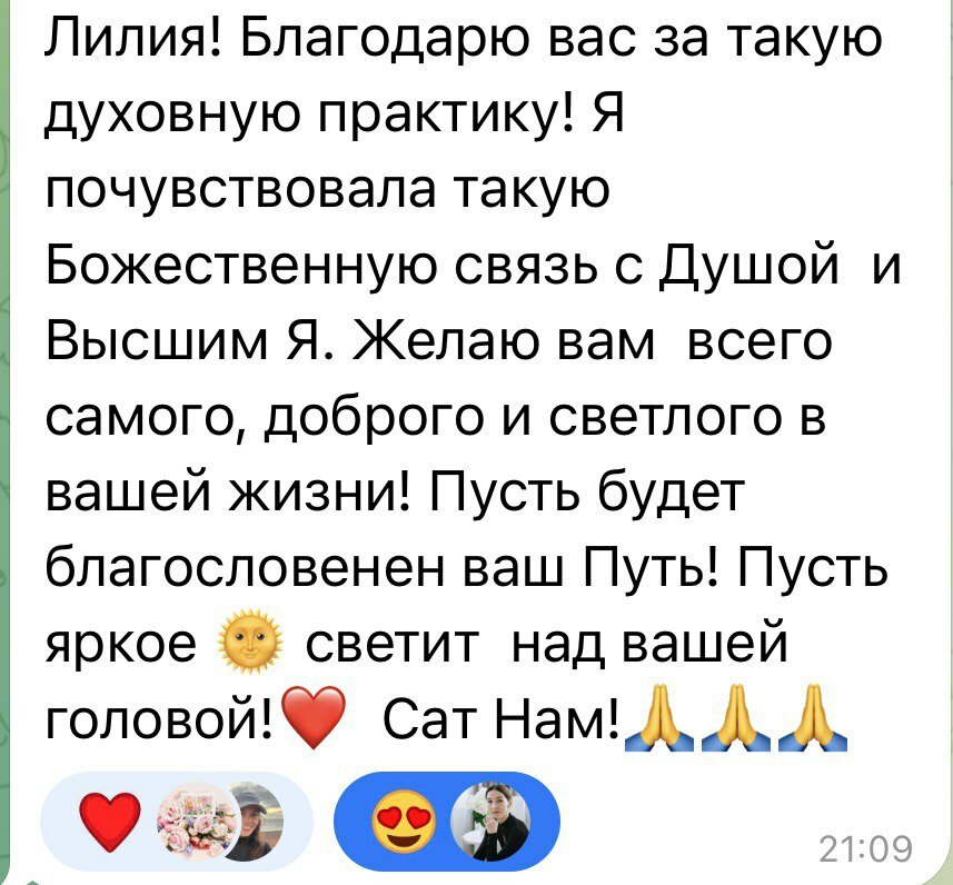 Духовное имя Liv Hariprit Kaur - выражает дар быть наполненным состраданием, творчеством и изобилием от приобщения к божественной любви Бога.